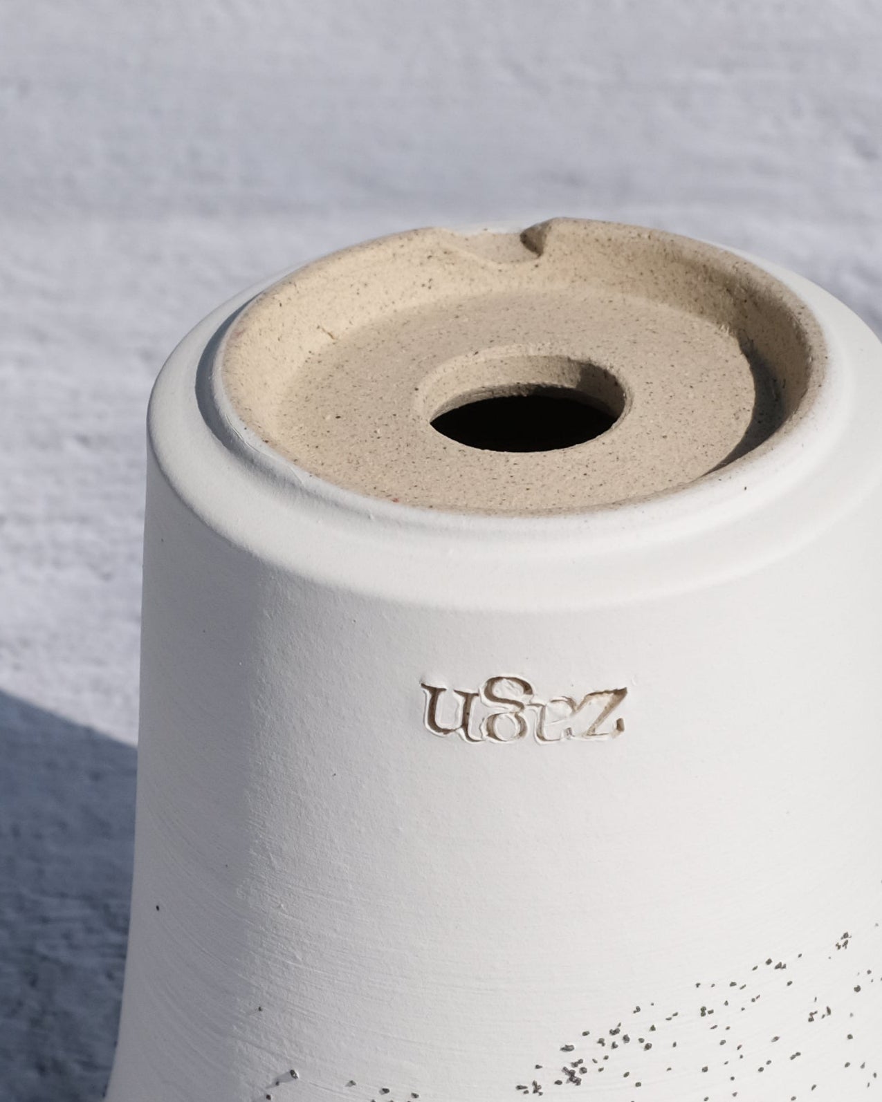 With a pure white matte base and gentle black speckles, this breathable clay pot brings clarity and softness to any space. Its clean silhouette and unglazed interior help your plants thrive—while offering a quietly elevated touch to your home.